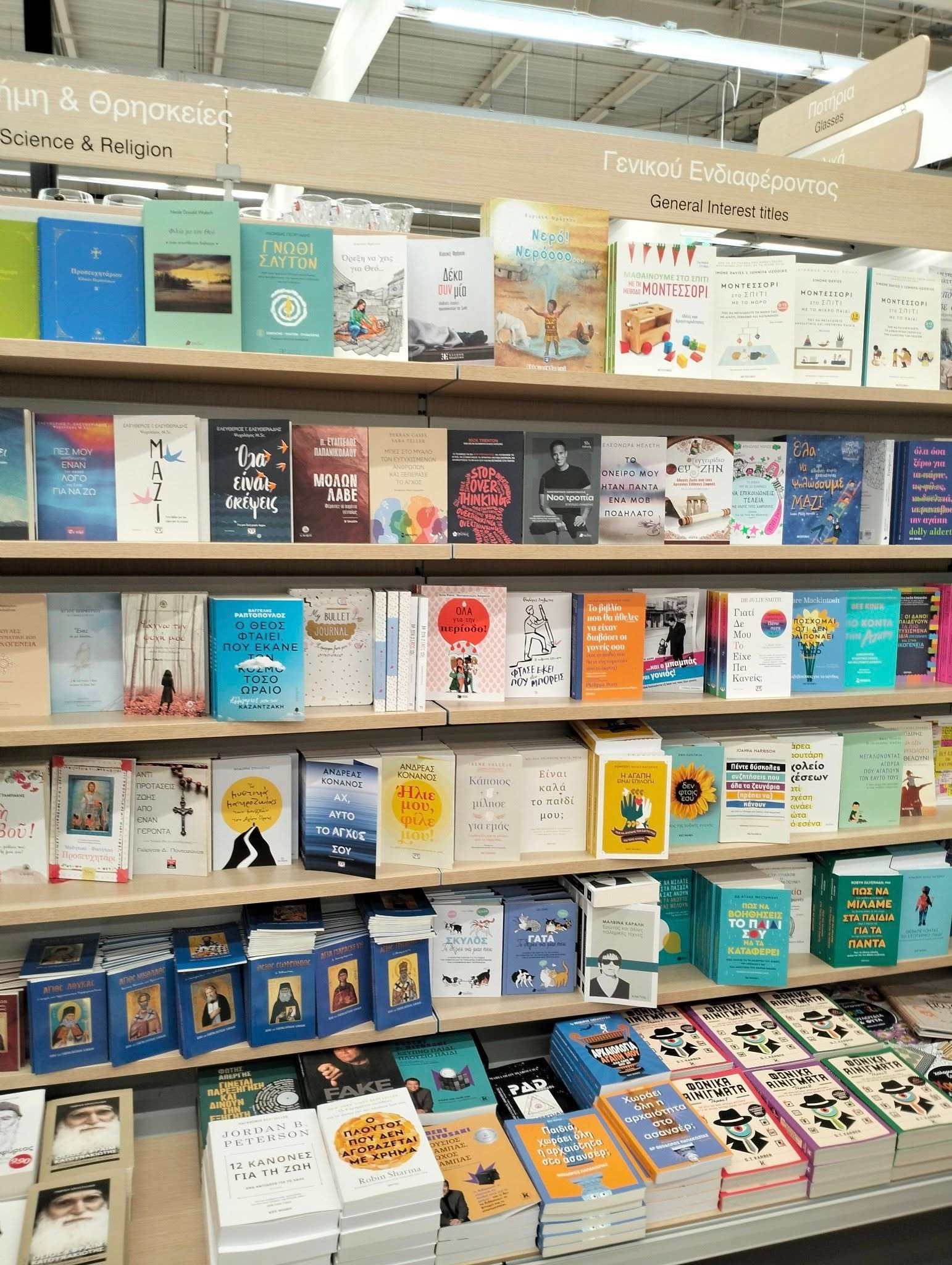 Έχουμε την χαρά στο τμήμα Βιβλιοπωλείο , Χαρτικά , Σχολικά είδη , τα πάντα ,ένας τεράστιος χώρος που φιλοξενεί πλούσια ποικιλία από Βιβλία για κάθε γούστο, στο τμήμα Θρησκεία & Επιστήμη & Γενικού ενδιαφέροντος.